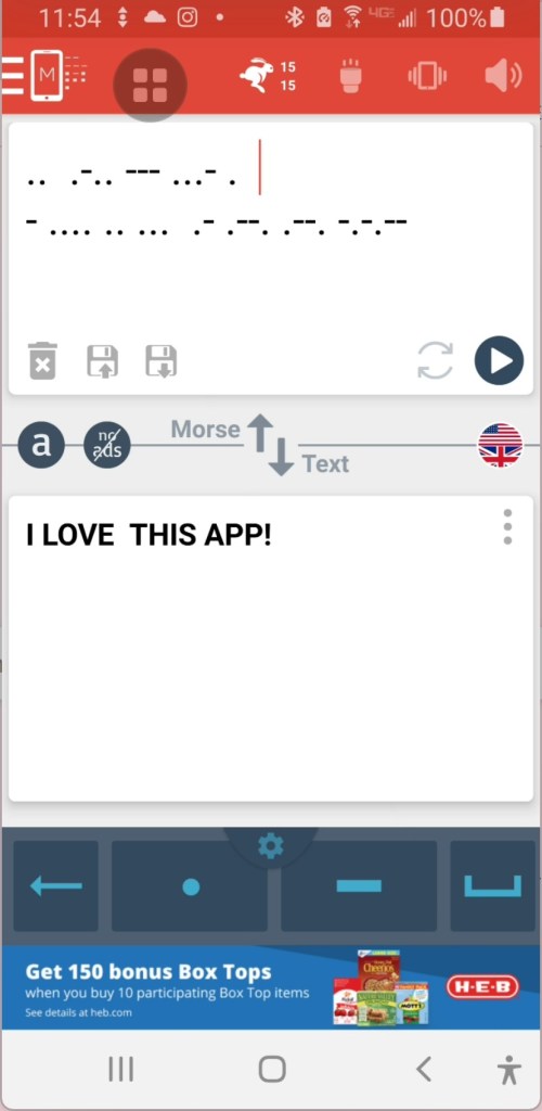 As well as having a better page, I also found an app that would translate Morse Code when the other person types dots or dashes into. It is called the Morse Code Translator. This can be way faster than the cheat sheet especially now that I am fluent. I know numbers in Morse Code plus I am learning punctuation. The app knows every character instead of having my poster cheat sheet with only the alphabet. However, my favorite app to use is only on android. So, I usually give my phone to whomever is helping me that day when I am without my computer to communicate.